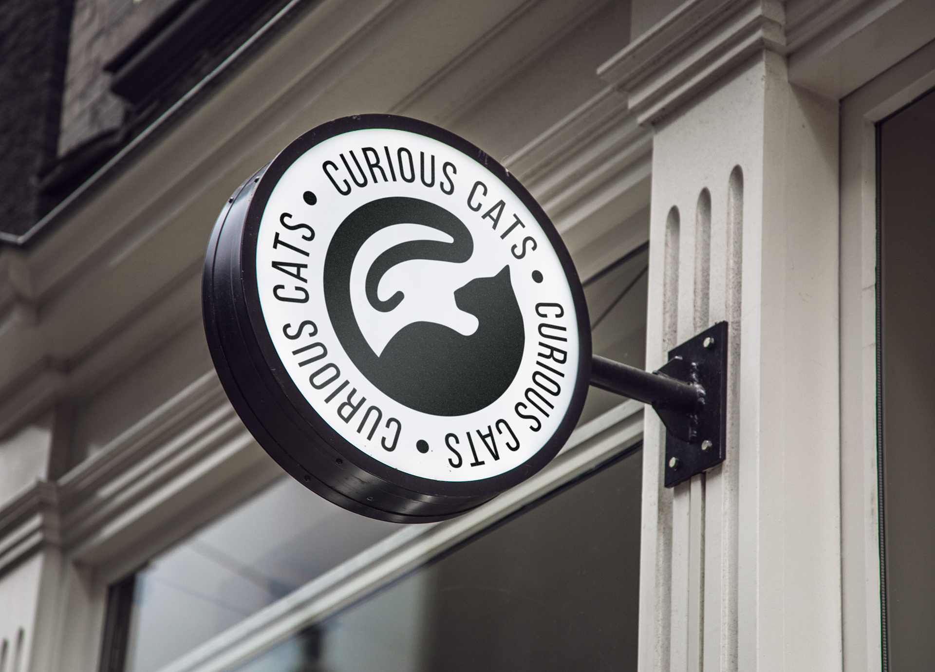 Based on the well known proverb 'curiosity killed the cat’, the logo of the fictitious cafe “Curious Cats” features the imagery of a cat looking at its tail, curled up into a shape resembling a question mark to reflect the aforementioned proverb. The fun, bright and clean logos are showcased below in an array of different contexts, illustrating how these logos could be applied.